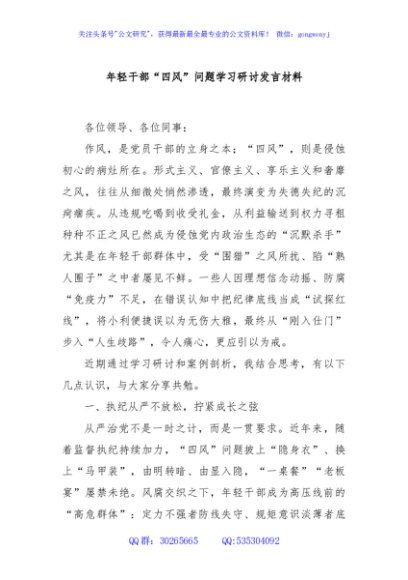 / 年轻干部“四风”问题学习研讨发言材料