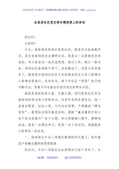 / 在某某社区党支部专题党课上的讲话