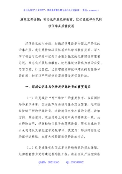 廉政党课讲稿:常态化开展纪律教育,以优良纪律作风引领保障高质量发展