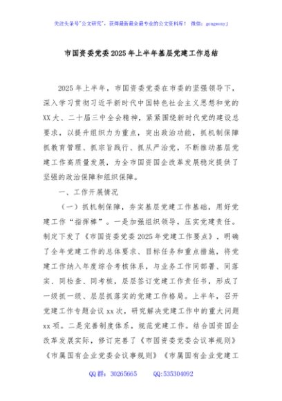 / 市国资委党委2025年上半年基层党建工作总结