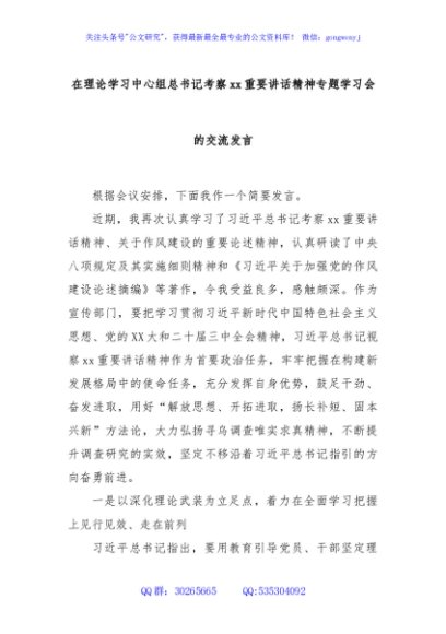 / 在理论学习中心组总书记考察xx重要讲话精神专题学习会的交流发言
