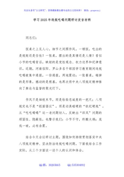/ 学习2025年违规吃喝问题研讨发言材料