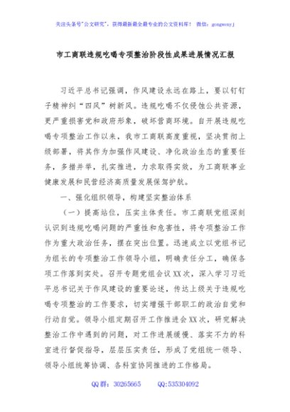/ 市工商联违规吃喝专项整治阶段性成果进展情况汇报