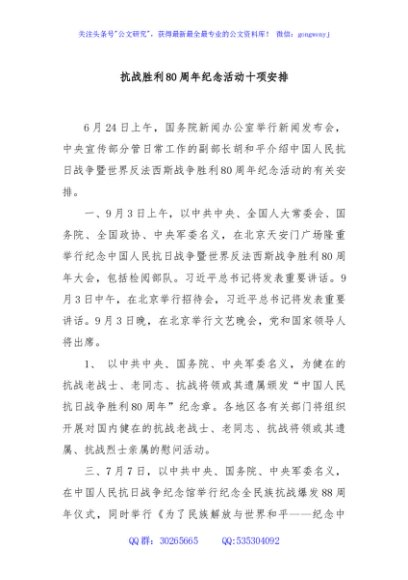 / 抗战胜利80周年纪念活动十项安排