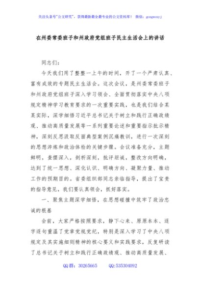 / 在州委常委班子和州政府党组班子民主生活会上的讲话