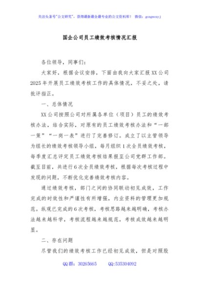/ 国企公司员工绩效考核情况汇报