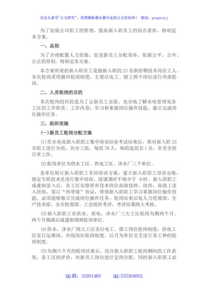 / 国企关于新入职员工轮岗方案