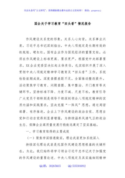 / 国企关于学习教育“回头看”情况报告
