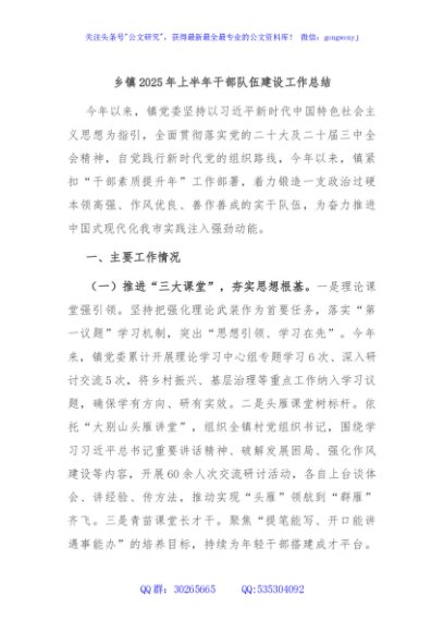 / 乡镇2025年上半年干部队伍建设工作总结