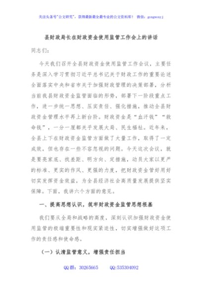 / 县财政局长在财政资金使用监管工作会上的讲话