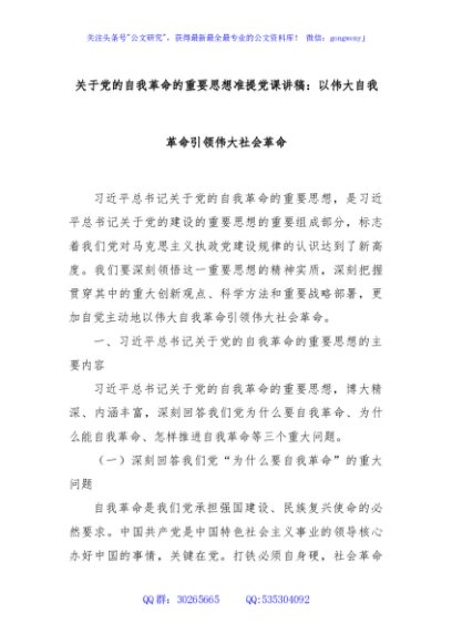/ 关于党的自我革命的重要思想准提党课讲稿:以伟大自我革命引领伟大社会革命