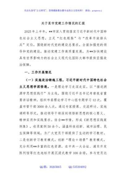 / 关于某市党建工作情况的汇报