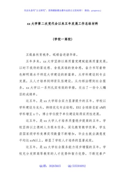/ xx大学第二次党代会以来五年发展工作总结材料(学校一高校)