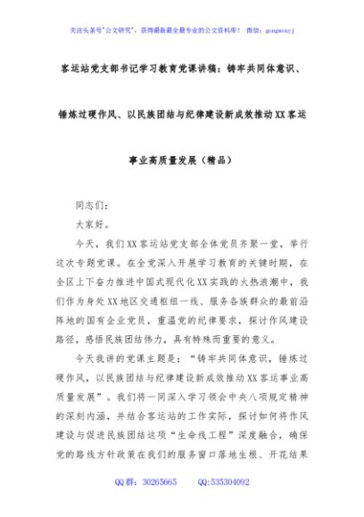 客运站党支部书记学习教育党课讲稿:铸牢共同体意识、锤炼过硬作风、以民族团结与纪律建设新成效推动XX客运事业高质量发展(精品)