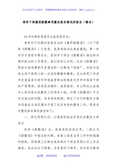领导干部履职提醒事项整改落实情况的报告(精品)