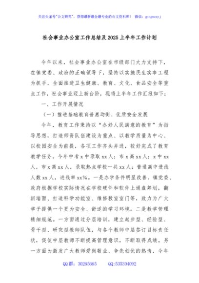 / 社会事业办公室工作总结及2025上半年工作计划