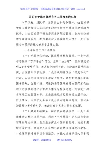 / 某县关于城市管理有关工作情况的汇报