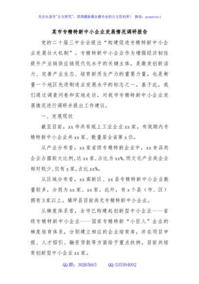 / 某市专精特新中小企业发展情况调研报告