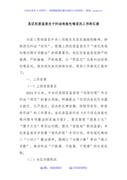 / 某区纪委监委关于纠治违规吃喝歪风工作的汇报