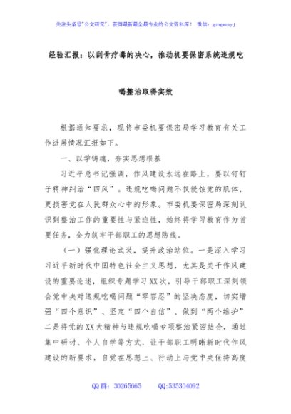 / 经验汇报:以刮骨疗毒的决心,推动机要保密系统违规吃喝整治取得实效