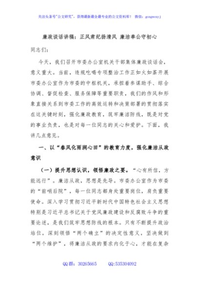 / 廉政谈话讲稿:正风肃纪扬清风 廉洁奉公守初心