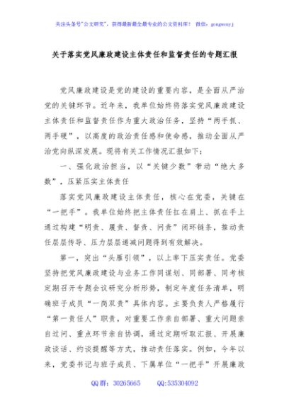 / 关于落实党风廉政建设主体责任和监督责任的专题汇报