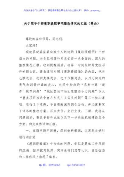 关于领导干部履职提醒事项整改情况的汇报(精品)