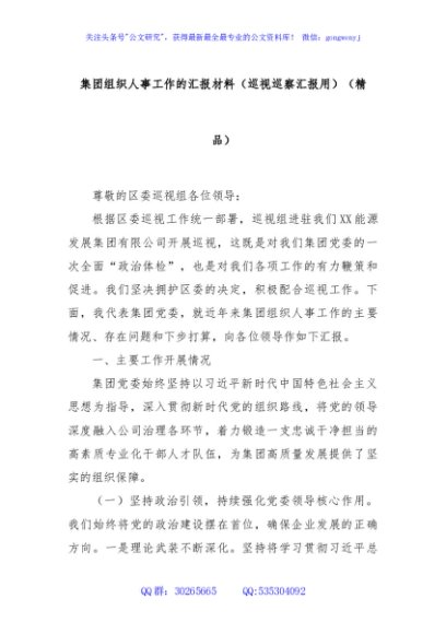 / 集团组织人事工作的汇报材料(巡视巡察汇报用)(精品)