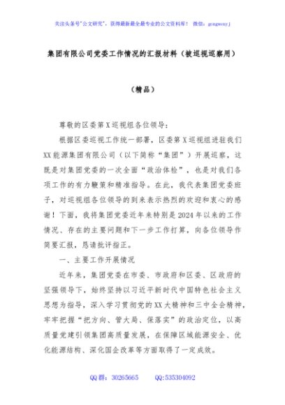 / 集团有限公司党委工作情况的汇报材料(被巡视巡察用)(精品)