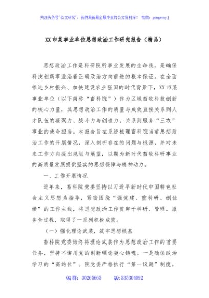 / XX市某事业单位思想政治工作研究报告(精品)