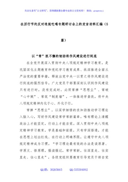 / (5篇)在厉行节约反对违规吃喝专题研讨会上的发言材料汇编