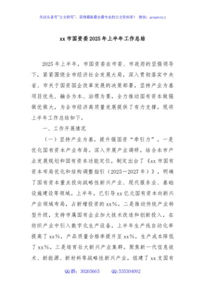 / xx市国资委2025年上半年工作总结