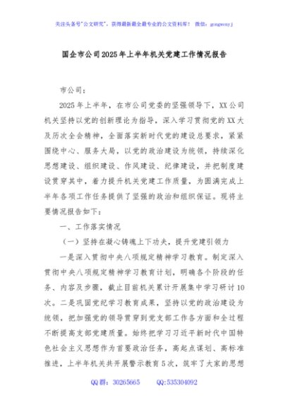 / 国企市公司2025年上半年机关党建工作情况报告