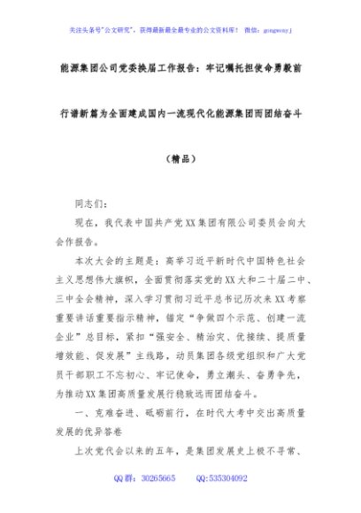 / 能源集团公司党委换届工作报告:牢记嘱托担使命勇毅前行谱新篇为全面建成国内一流现代化能源集团而团结奋斗(精品)
