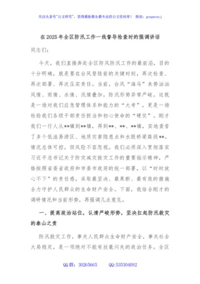 / 在2025年全区防汛工作一线督导检查时的强调讲话