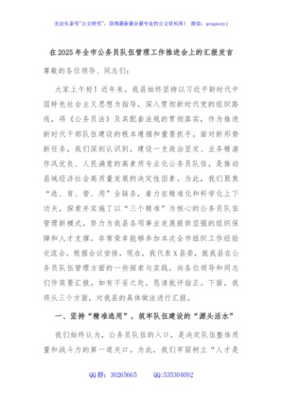 / 在2025年全市公务员队伍管理工作推进会上的汇报发言