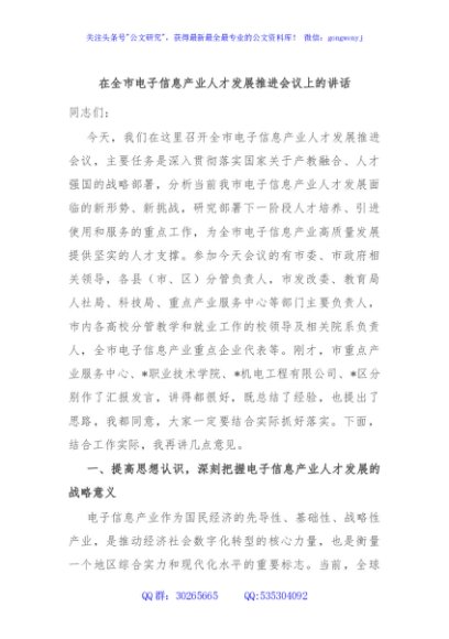 / 在全市电子信息产业人才发展推进会议上的讲话
