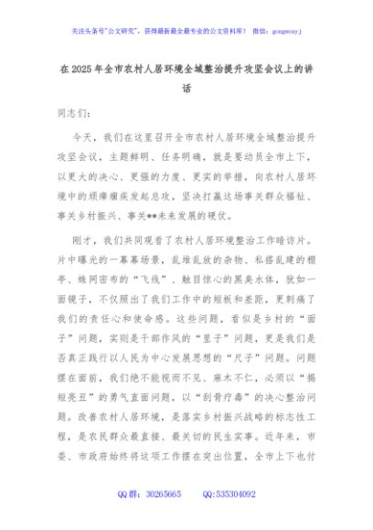 / 在2025年全市农村人居环境全域整治提升攻坚会议上的讲话