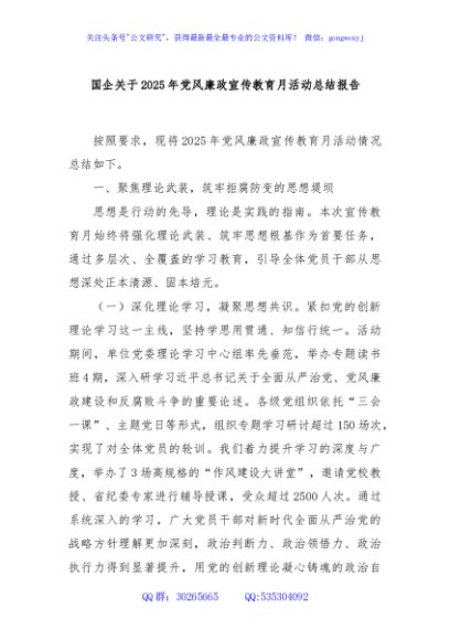 / 国企关于2025年党风廉政宣传教育月活动总结报告