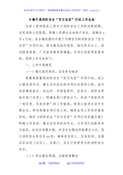 / 乡镇开展消防安全“百日攻坚”行动工作总结