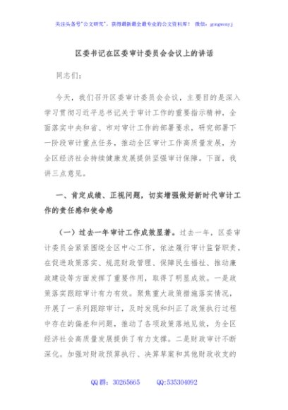 / 区委书记在区委审计委员会会议上的讲话