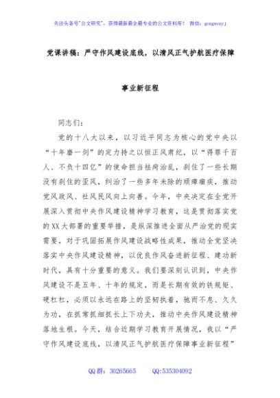 / 党课讲稿:严守作风建设底线,以清风正气护航医疗保障事业新征程