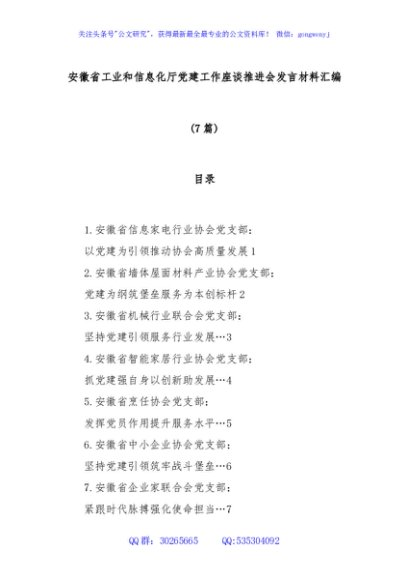 / (7篇)安徽省工业和信息化厅党建工作座谈推进会发言材料汇编