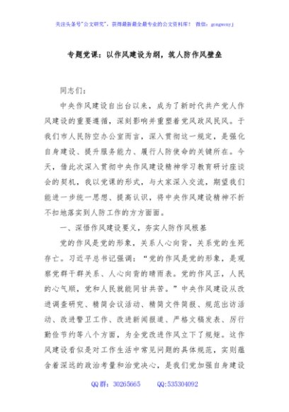 / 专题党课:以作风建设为纲,筑人防作风壁垒