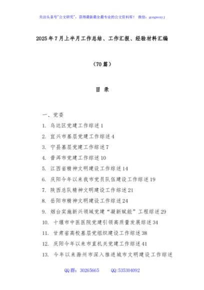 / (70篇)2025年7月上半月工作总结、工作汇报、经验材料汇编