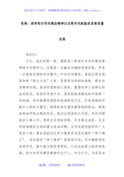 / 党课:深学笃行作风建设精神以过硬作风赋能某某高质量发展