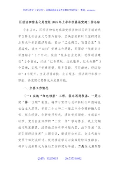 / 区经济和信息化局党组2025年上半年抓基层党建工作总结