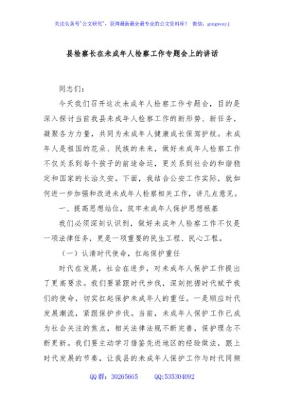 / 县检察长在未成年人检察工作专题会上的讲话