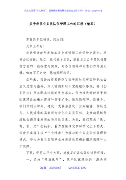 / 关于我县公务员队伍管理工作的汇报(精品)
