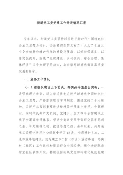 / 街道党工委党建工作开展情况汇报
